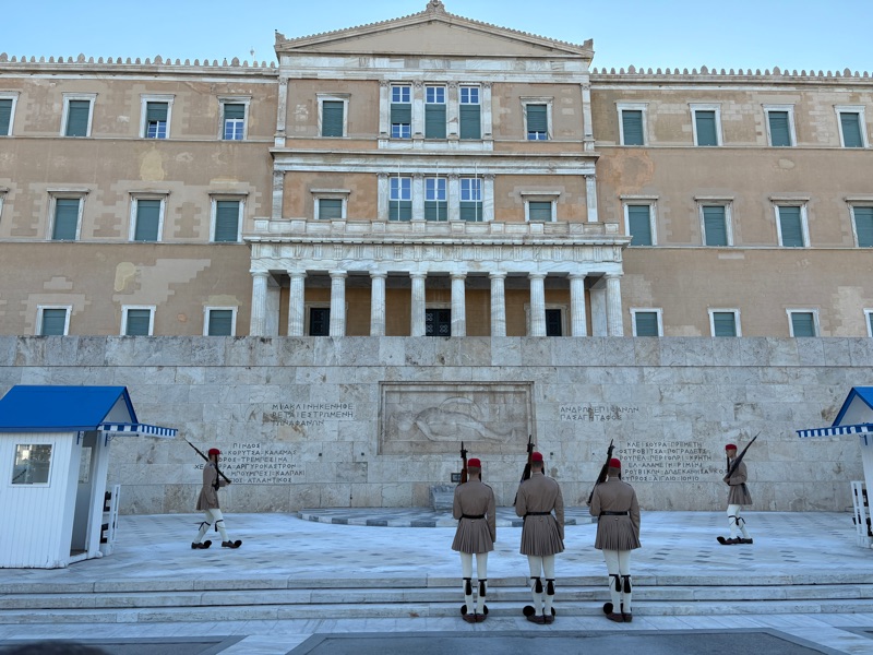 To my relief, the flight went according to plan. Once I arrived in Athens, 9 hours later, customs was swift and easy. The metro train to the city was a short walk from the airline terminal, so other than the train being relatively crowded, the trip was smooth. The blue line takes you to Syntagma Square, the home of Parliament / changing of the guard.