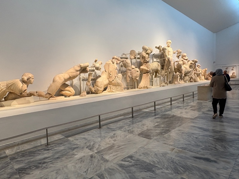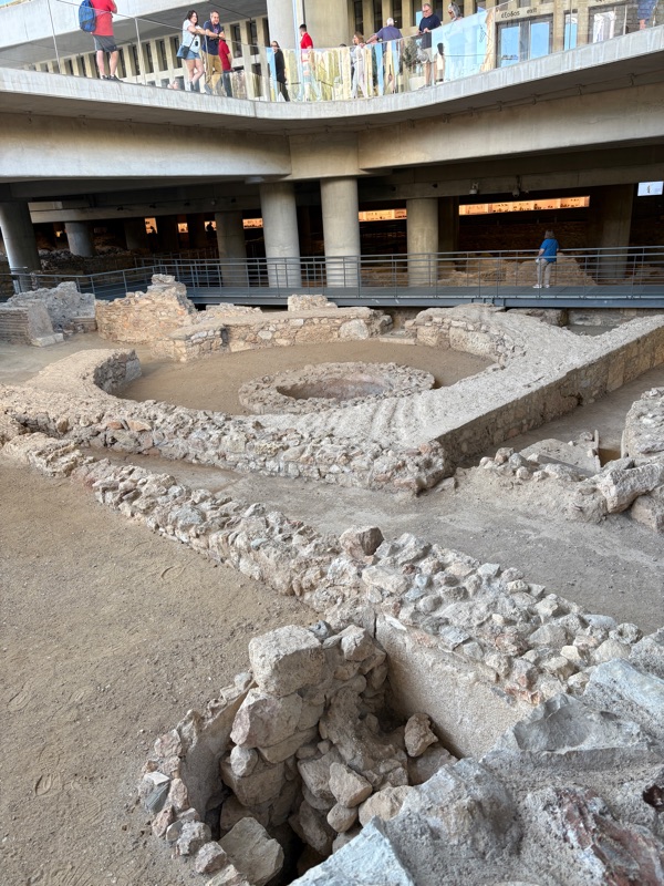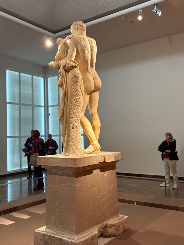 The following morning, we headed out to the Acropolis Museum which has an amazing collection of antiquities.The museum was built above ancient city dwellings, viewable from above through a glass sidewalk. Our guide pointed out that it is very difficult to embark on any new construction in Athens because all archaeological sites are protected and there is plenty to be discovered in this city.
