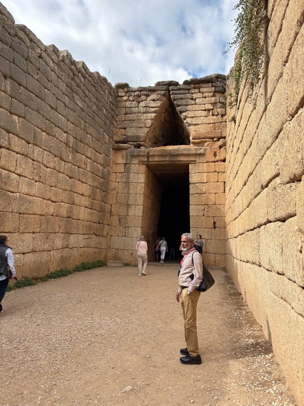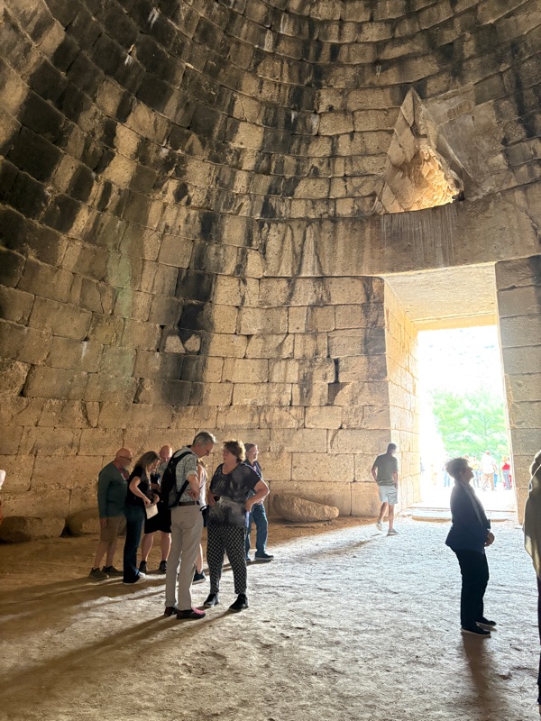 After a brief stop, we moved on to Mycenae, with structures over 4,000 years old situated on a beautiful hilltop. If not mistaken, this was the birthplace of Greek mythology. The citadel of Mycenae was the center of the powerful Mycenaean civilization, a major political and economic hub associated with King Agamemnon, who led forces in the Trojan war. There is an extraordinary beehive tomb in his memory a short distance away.
