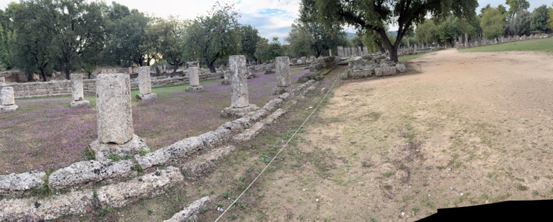 We actually ran across the ancient track field for an Olympian experience. I had a good start but ran out of breath towards the end.