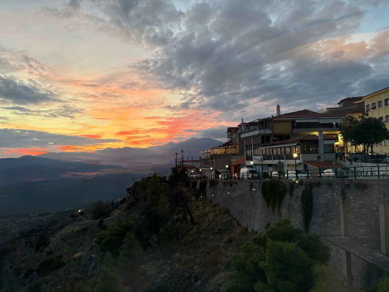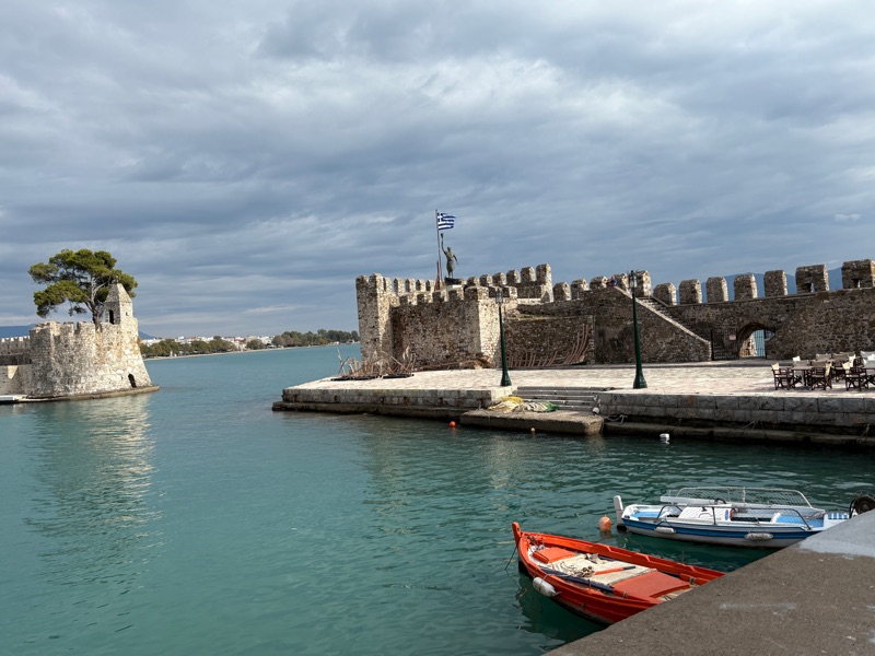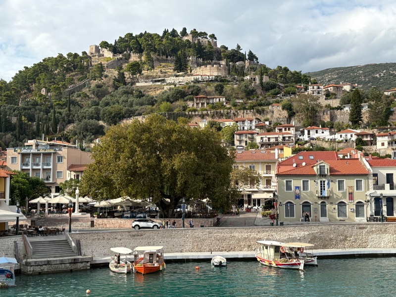 ... and travel along a beautiful winding road with a landscape full of mountains and olive tree groves. The quaint seaside town of Nafpaktos is a convenient place to stop for a coffee and a walk on the beach and definitely a place worth returning to one day.