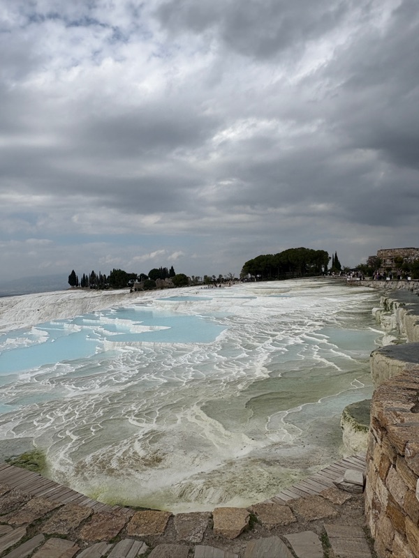 Pamukkale, meaning "cotton castles", is a hot springs, formed by calcium-rich thermal waters, and is a UNESCO world heritage site in Southwestern Turkey. It is a stunning natural wonder and located in the Greek- Roman ancient city of Heiropolis. We made a stop there on the way to Antalya.