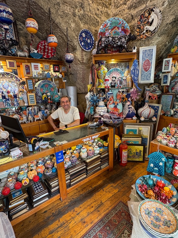 The Grand Bazaar, a shopper's paradise, covers miles of stores and is overwhelming to navigate. While it is customary to negotiate prices with merchants, jewelry seemed to be an exception. You can spend days going through this complex and should come up for air so you don't get dizzy with all the choices. The local goods are awesome ... tea sets, rugs, pottery, scarves, lamps, and so much more. The area outside the bazaar also has good deals if you have the energy to explore more.
