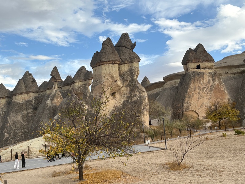 Cappadocia's landscape was shaped millions of years ago by volcanic eruptions, and wind and water erosion to become one of the most photographed places on the planet. It is famous for its unworldly landscape of fairy chimneys, cave dwellings, and rock-cut Byzantine churches, many still with frescoes. This is called the Goreme Open Air Museum which is a UNESCO World Heritage site.