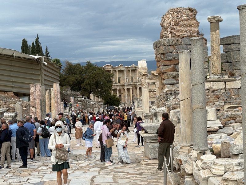 A major site is the Library of Celsus which once held 12,000 scrolls. It has been restored to withstand earthquakes which are very prevalent in this country.